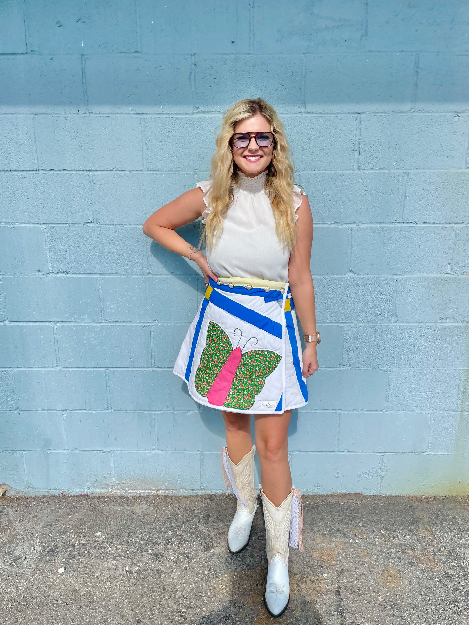 - I am loving the quilted mini skirts so much! These quilt skirts are so comfortable! You can easily dress the skirts up with some cute sandals or dress it down with a sneaker! The skirts consist of buttons for an adjustable waist!